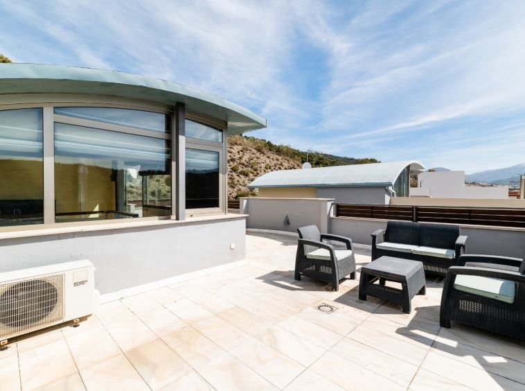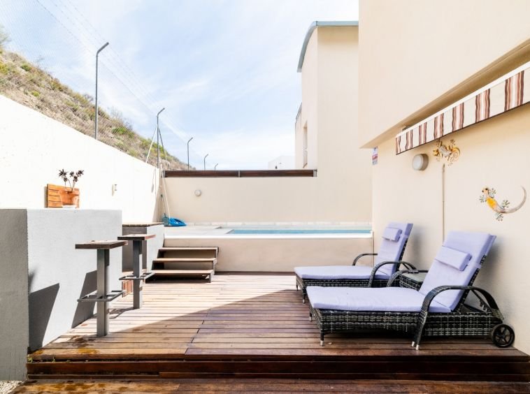 Jardín de 159m2 (zona barbacoa, piscina privada, jardines, terraza con vistas, toldos automáticos)